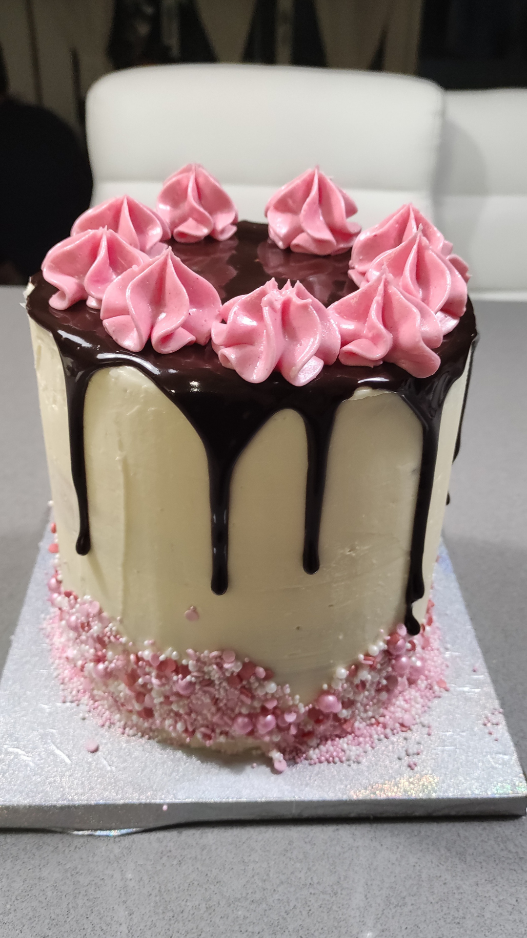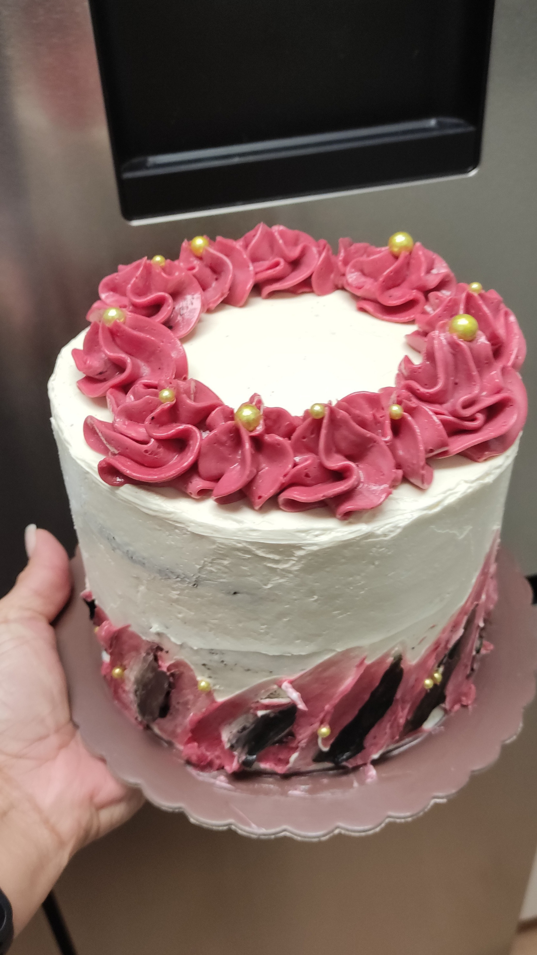 «Bellisisima tarta para el baby shower de nuestra nena. No sólo nos encantó como quedó si no que nos encantó su sabor (red velvet). Repetiría sin dudarlo